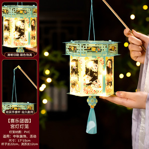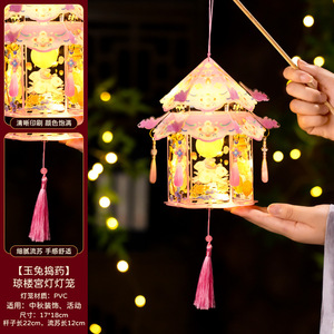 中秋节手提灯笼儿童手工diy玉兔花灯材料包中秋古风发光兔子灯笼