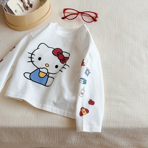 童星圆儿童T恤秋装新款棉质长袖打底衫女童可爱卡通猫印花上衣潮t