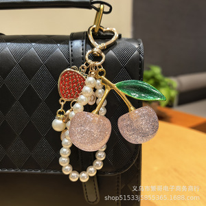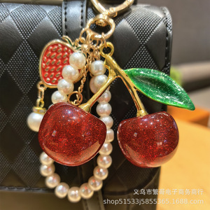 厂家直销樱桃包包挂件车厘子钥匙扣创意汽车装饰钥匙扣跨境批发女