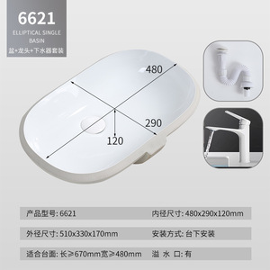无缝台下盆陶瓷洗手盆冬瓜型陶洗脸池盆酒店家用嵌入式洗手盆台盆