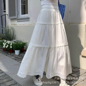 蛋糕层刺绣花边拼接棉质半身裙女春季新款法式小众字小白裙女