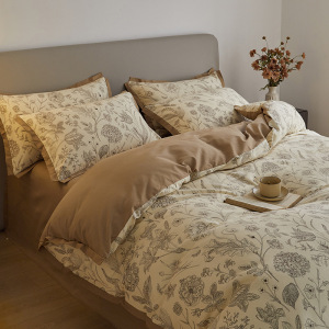 100长绒棉印花磨毛四件套全棉纯棉四季加厚床单被套床笠床上用品4