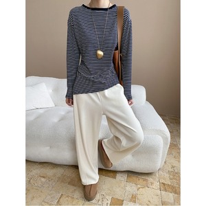 司南 不规则设计感 慵懒风撞色条纹圆领收腰显瘦长袖T恤 SN7882