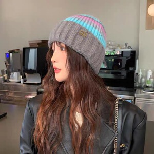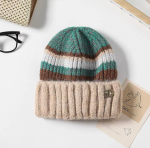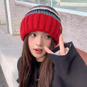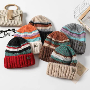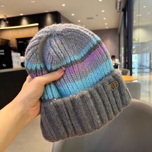 条纹多巴胺渔夫帽2025新款秋冬撞色针织帽防寒保暖小众拼色毛线帽