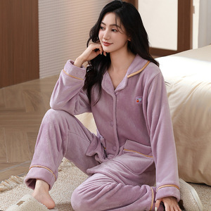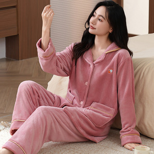 2025秋冬季新款睡衣女双面法兰绒长袖加厚保暖纽扣舒适家居服套装