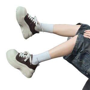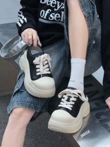 小白板鞋白色运动鞋女2025春季新款厚底小白鞋丑萌大头面包鞋板鞋