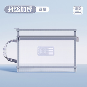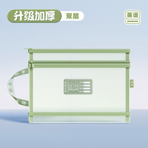 A4科目袋透明网纱双层手提袋学生分类学科试卷文件作业收纳拉链袋