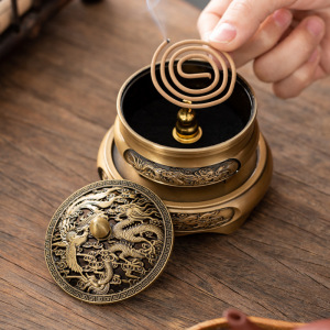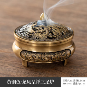 龙凤呈祥三足盘香炉香篆炉铜合金香炉家用盘香炉室内熏香炉香薰炉