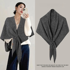 纯色羊毛混纺交叉针织披肩女冬季时尚百搭保暖护颈椎围脖外搭坎肩