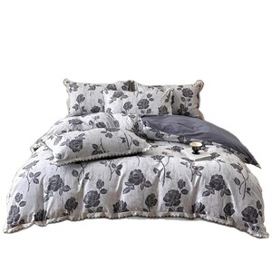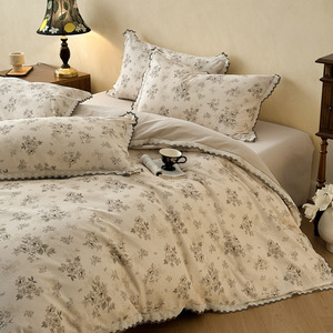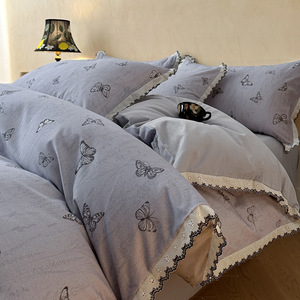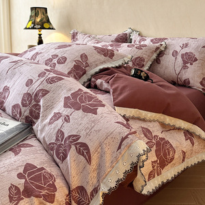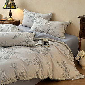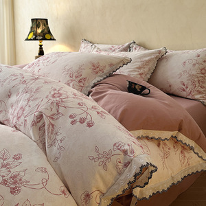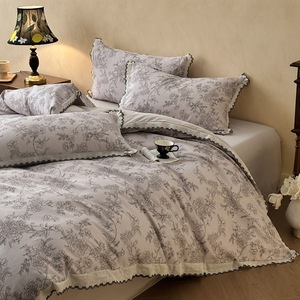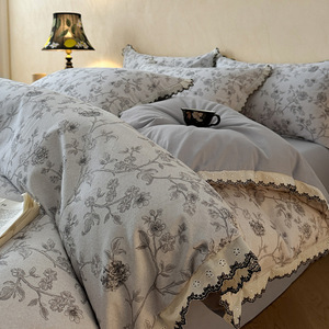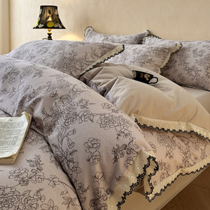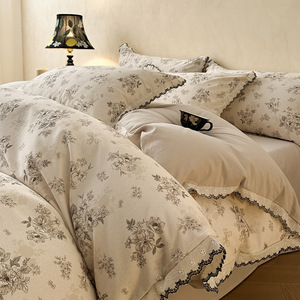 A类全棉磨毛四件套加厚纯棉法式复古花边床上三件套床单被套南通