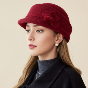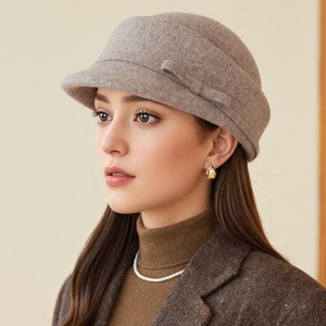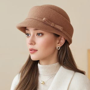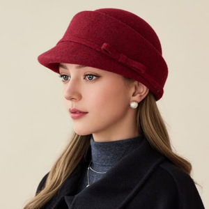 妈妈贵气帽子秋冬季蝴蝶结水桶帽女羊毛呢盆帽英伦复古毛毡渔夫帽