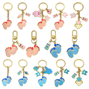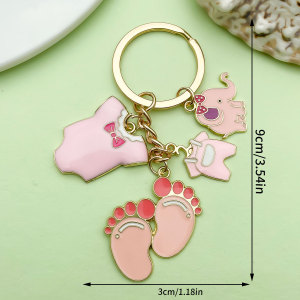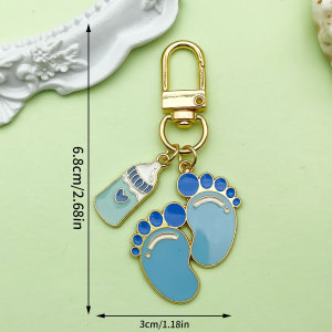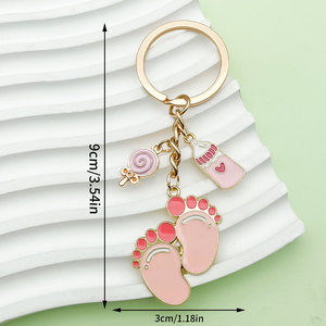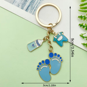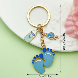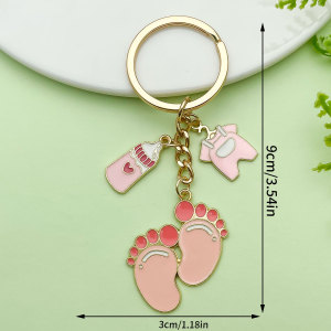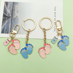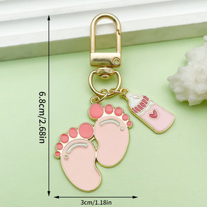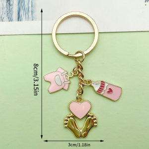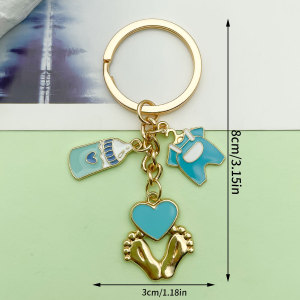 跨境爱心钥匙扣 婴儿洗礼性别揭示迎婴派对伴手礼挂件脚丫钥匙扣宝宝衣奶瓶 儿童可爱合金滴油diy饰品配