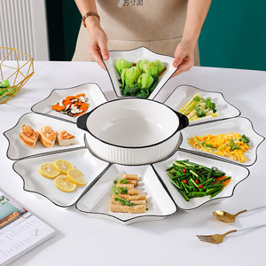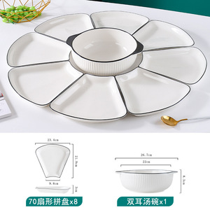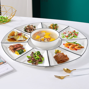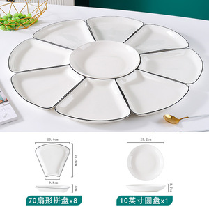 爆款拼盘陶瓷餐具家用转盘团圆盘组合家庭聚会碟子扇形厂跨境批发