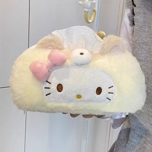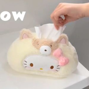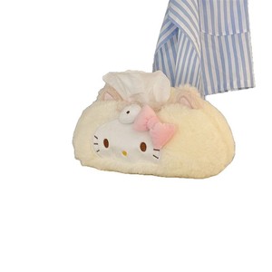 可爱kitty奶黄毛绒纸巾盒纸巾家用客厅卫生间纸盒纸巾盒车载绒布