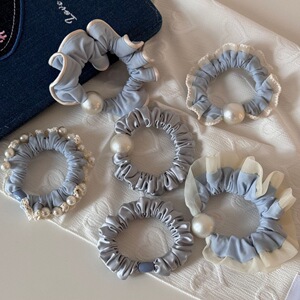 奶蓝色超柔软珍珠发圈小肠圈高弹力头绳基础皮筋发绳简约百搭头饰