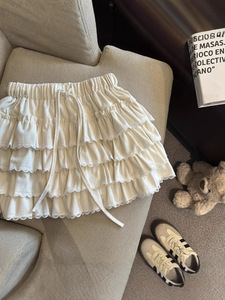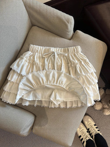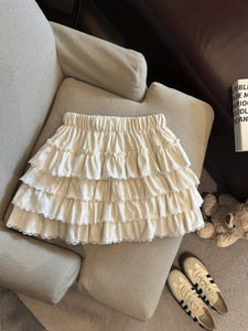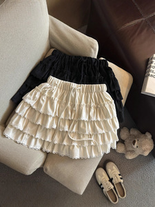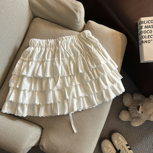 法式甜美蕾丝花边蛋糕裙女早秋高腰显瘦a字半身裙拼接木耳边短裙
