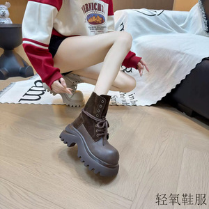 厚底马丁靴女款2025新款英伦风大黄靴骑士靴短靴女春秋单增高靴子