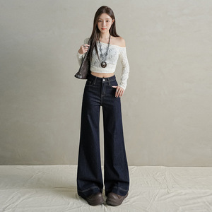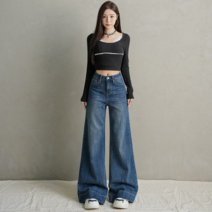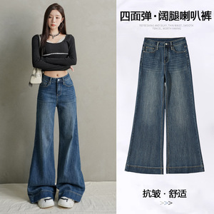包邮 复古微喇牛仔裤女春秋2025新款不贴腿高腰宽松阔腿喇叭裤