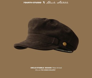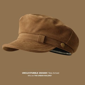秋冬款贝雷帽复古色系显脸小百搭前进帽透气棉麻平顶高级感报童帽