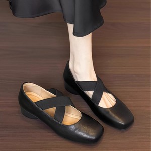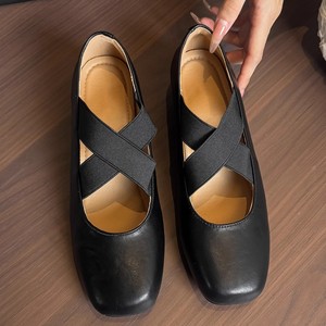 现货~35-42码猪鼻子复古芭蕾舞鞋子方头软底粗跟单鞋玛丽珍大码秋