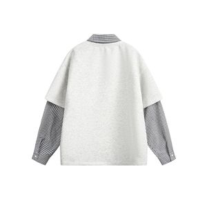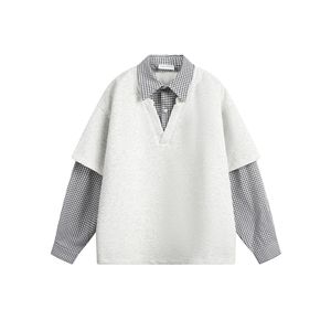 CATTEE美式学院风格子拼接假两件卫衣男女款小个子衬衫领polo上衣