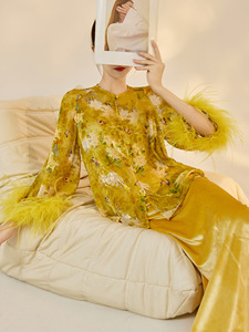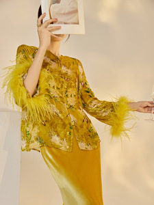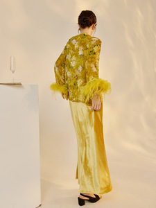 新中式国风秋季新款高端提花袖口羽毛拼接设计外套半裙套装 N7048