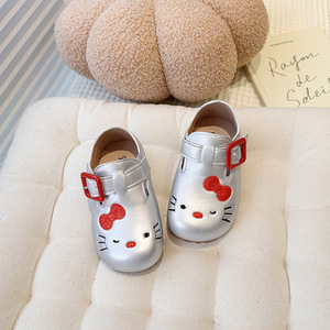 女童小皮鞋2025春秋新品卡通小猫设计感女宝宝时尚潮流休闲公主鞋