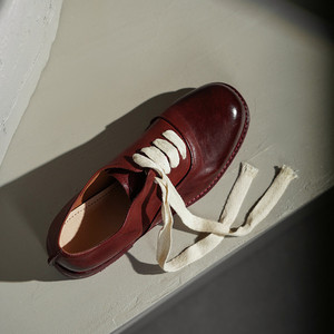 水洗牛皮小皮鞋女英伦单鞋秋冬新款真皮圆头系带低跟深口单鞋女鞋