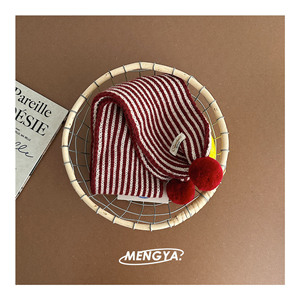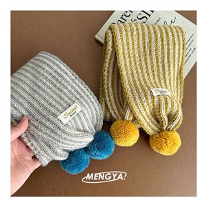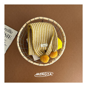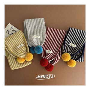 儿童冬季保暖围巾宝宝韩系彩色毛球围脖男女童条纹护脖跨境围巾潮