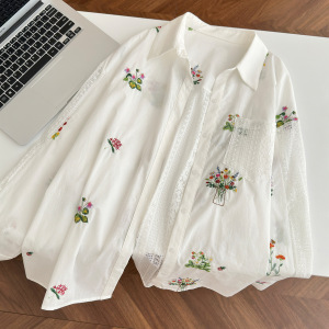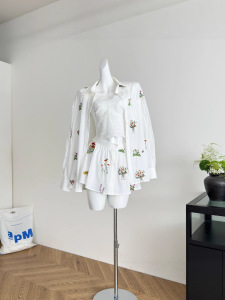 『欣幸』早秋新款月野花笺超美花朵刺绣拼蕾丝衬衫半身裙长裤套装