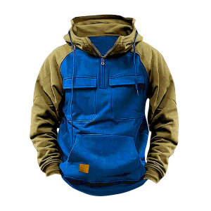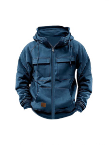 工装卫衣秋冬新款男式连帽纯色欧美复古宽松多口袋卫衣拉链外套男