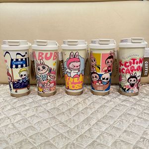 2025跨境新款铃兰杯高颜值保温杯可爱拉布布3D打印图案双饮吸管杯