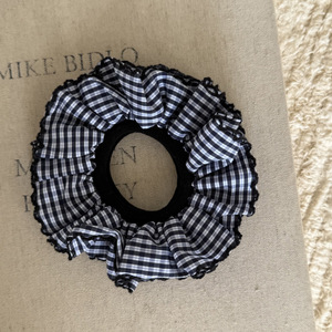 藏青双层格纹褶皱花边发圈女头饰橡皮筋头绳高弹力耐用发绳