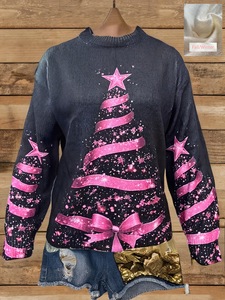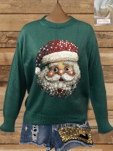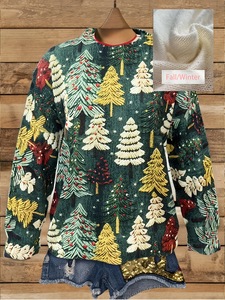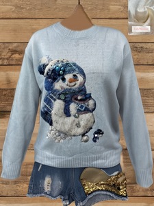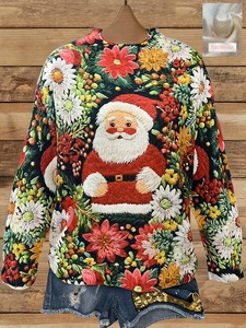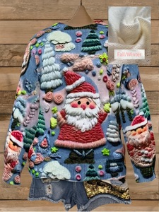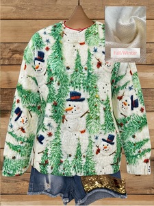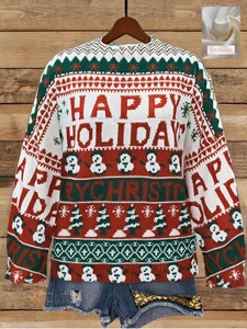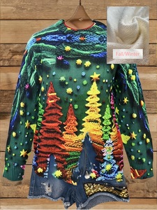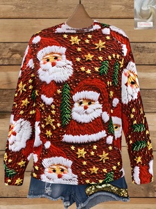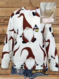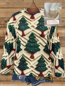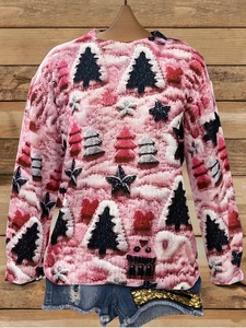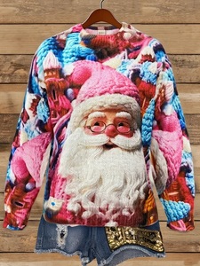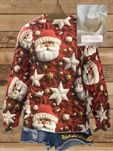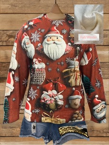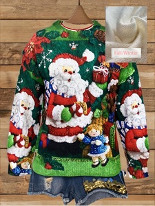 跨境欧美新款圣诞节圆领长袖3D印花时尚女装秋季冬毛衣亚马逊热销