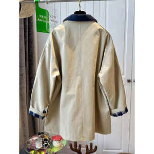 2025春秋款高级感英伦风领口撞色中长款风衣女外套小个子宽松休闲