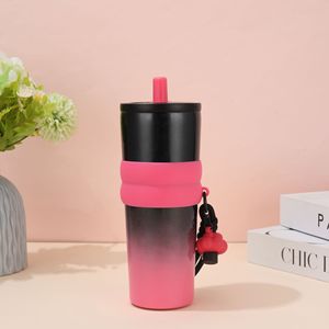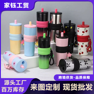 新款跨境316不锈钢冰霸杯渐变高颜值大容量保温杯子车载吸管水杯