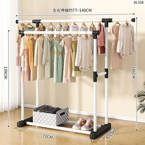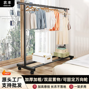 带轮晾衣架家用卧室宿舍简易不占地挂衣架室内落地款可移动衣帽架