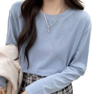 春秋冬2025新款长袖t恤女小众ins德绒内搭纯色百搭宽松上衣打底衫