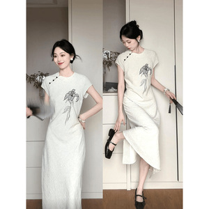 新中式国风短袖旗袍连衣裙女夏季新款气质高级感长裙子