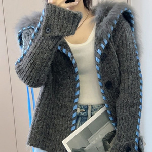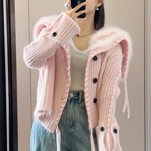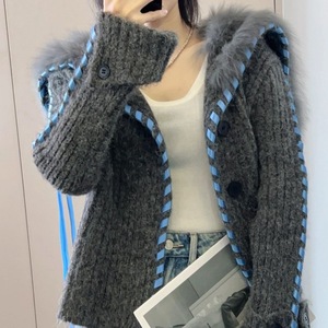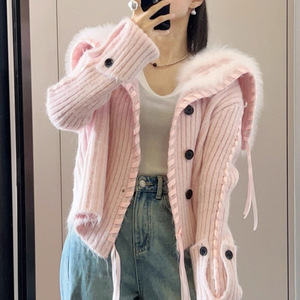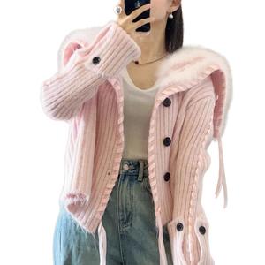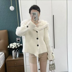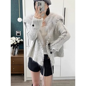 韩系海军领毛毛编织丝带针织开衫女2025秋冬新款时尚洋气毛衣外套
