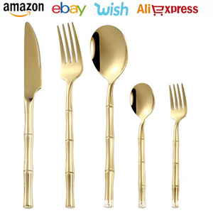 304不锈钢西餐具竹节全圆手柄刀叉勺牛排五件套装婚庆礼物新中式