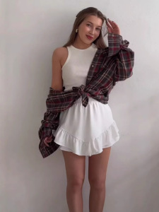 2025跨境欧美新款潮牌街头短裙高腰拼接荷叶边小个子A字蓬蓬短裙