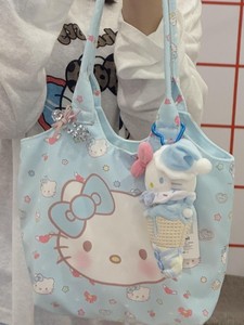 新款海盐kitty高颜值手提包可爱卡通大容量时尚帆布包女士单肩包