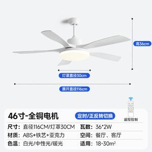 餐厅风扇灯现代静音吊顶大风力电风扇吊灯家用客厅变频遥控吊扇灯