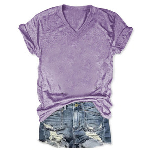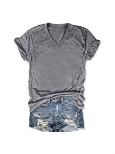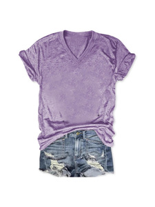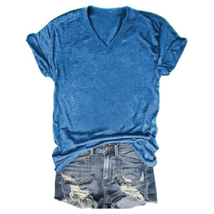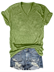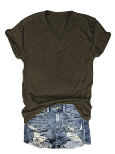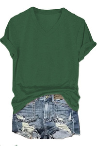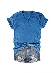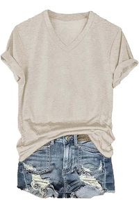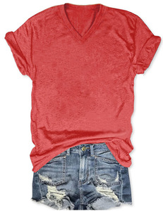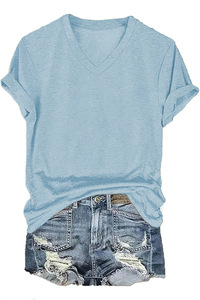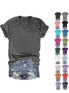 24色现货 亚马逊独立站 POD模式专供T恤 女士短袖V领T恤彩棉拉架