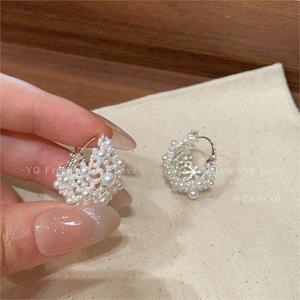 银色镂空珍珠蕾丝C圈耳扣
