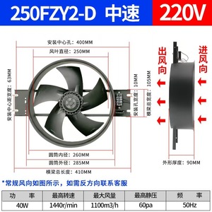 工频外转子轴流风机250/300FZY-D带电容220V纯铜电机工业散热风扇