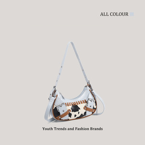 CHARHP&KEJNT时尚月牙通勤百搭机车单肩铆钉个性新款腋下斜挎包女