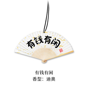 古风车载扇子香片香氛挂件创意车载香薰片挂件持久淡香氛去异味