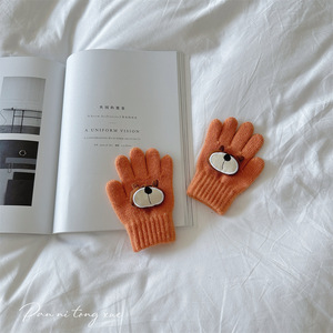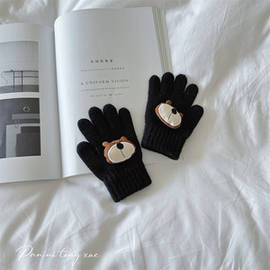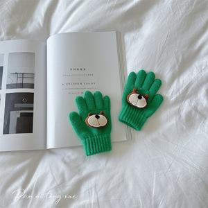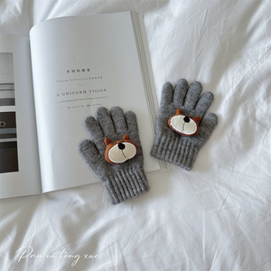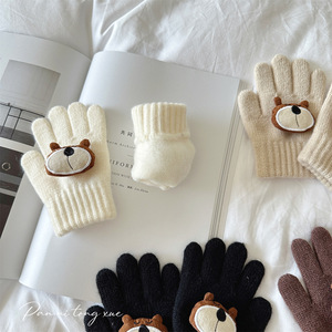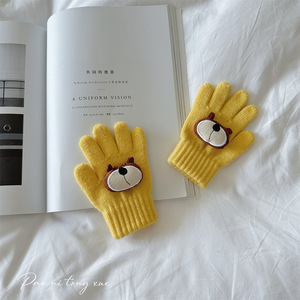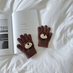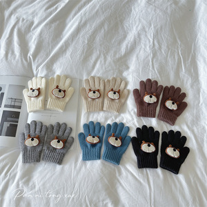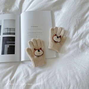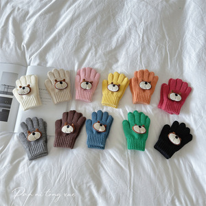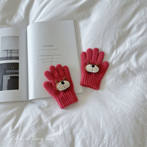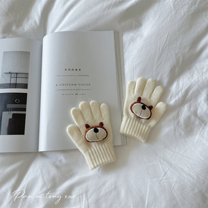 新款可爱小熊儿童毛线手套秋冬保暖男宝女宝防寒针织毛线五指手套
